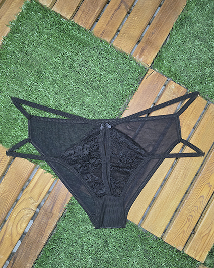 پشت شورت کاملا توری میباشد و در جلو علاوه بر نمادوزی توری و گیپوری فاق باز نیز میباشد که استفاده را بسیار راحت میکند.
